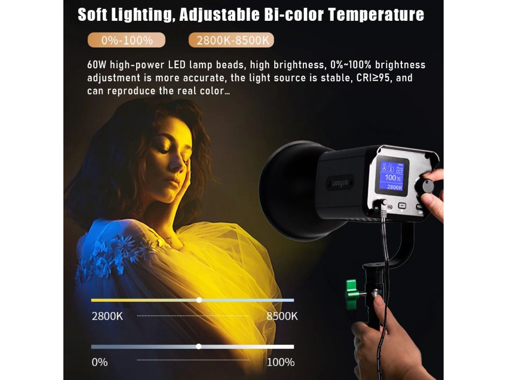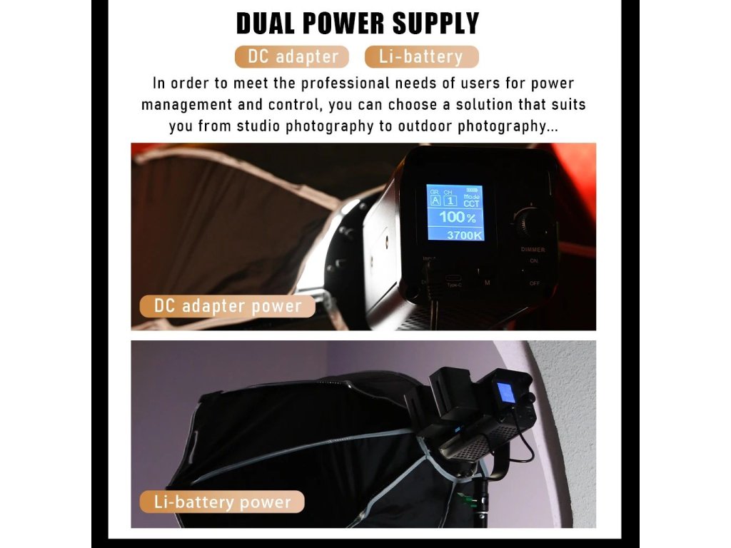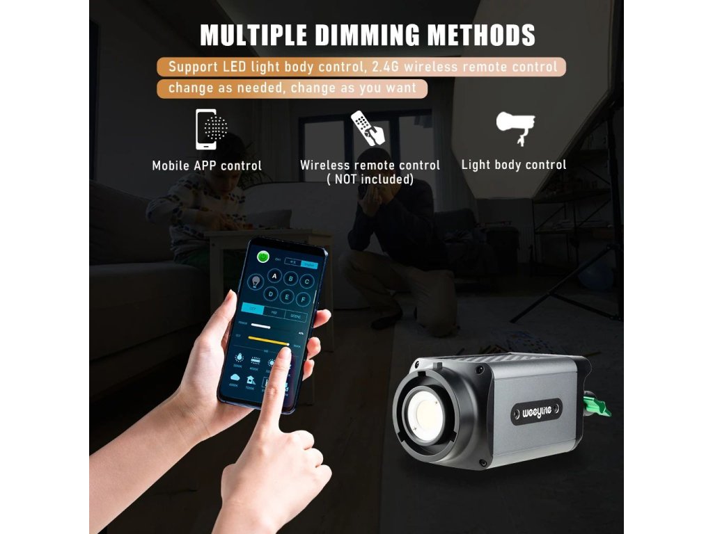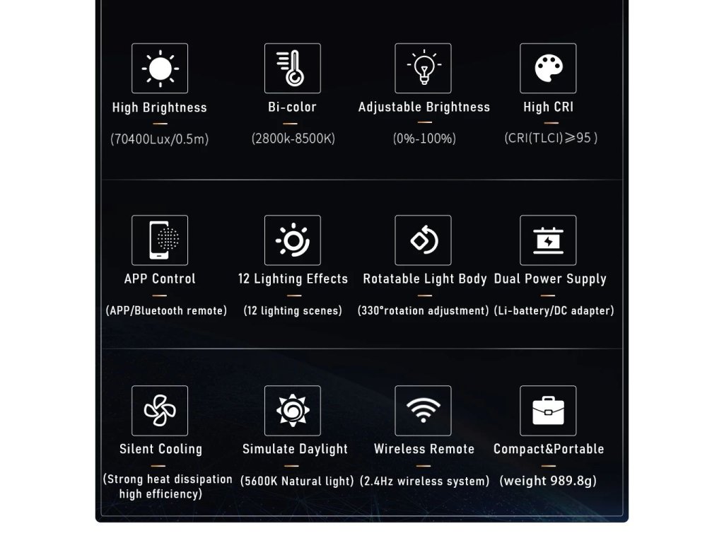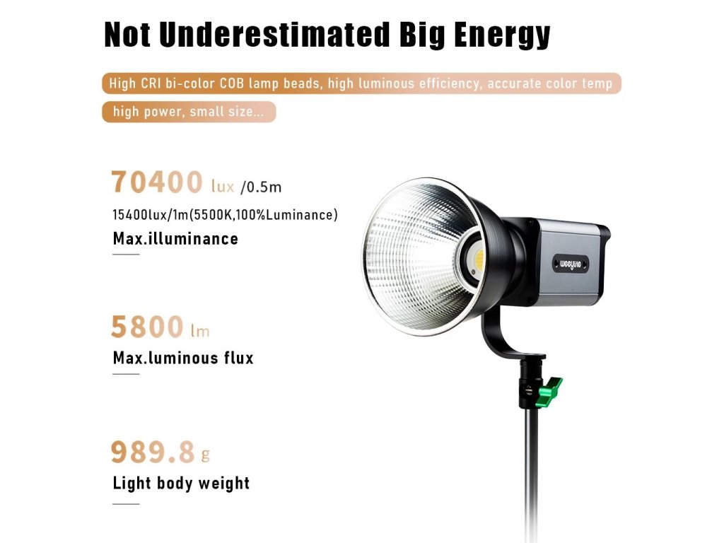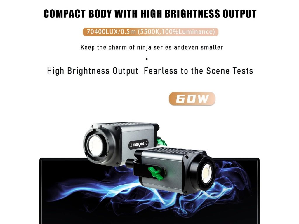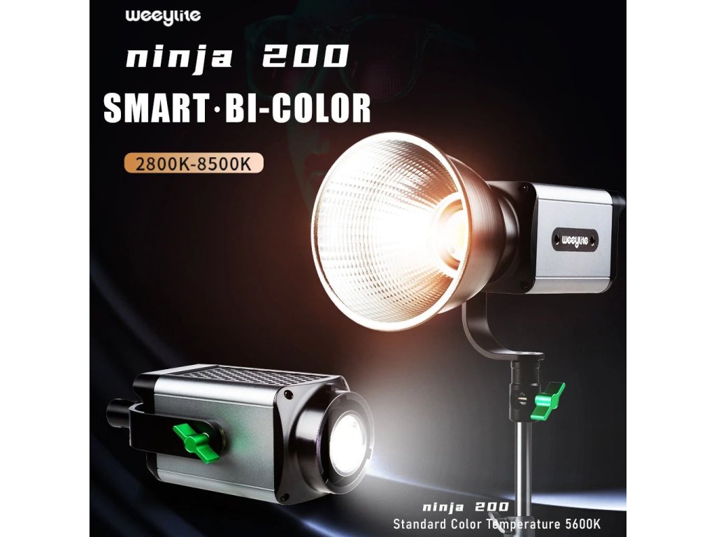 Sporul LED de studio în două culori Weeylite Ninja 200 60W utilizează tehnologia avansată COB LED pentru o putere de lumină ridicată și o redare bună a culorilor (?95 RA). Ideal pentru fotografie de studio, video etc. Oferă temperatură de culoare complet reglabilă de la 2800K-8500K și intensitate de la 0-100% (max 5800 lm, 70400 lx/0,5m). Controlul de la distanță este posibil cu acest model prin Bluetooth și o aplicație mobilă, alimentarea este asigurată de bateria NP-960/970 (nu este inclusă în pachet) sau de un PSU extern (sursă inclusă în pachet). Dimensiuni 175x92x85 mm, greutate 990 g. O variantă mai puțin puternică, dar mai portabilă a popularului Ninja 400.