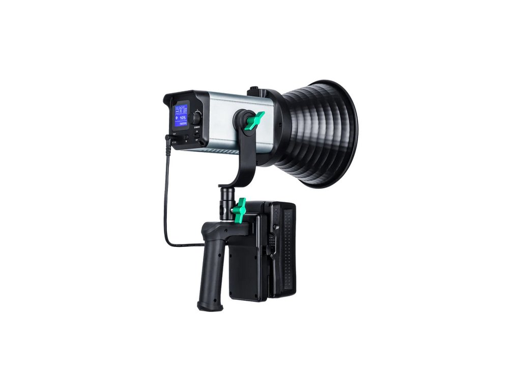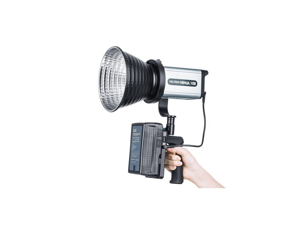 Lumina LED COB NINJA 10B (Bicolor) de dimensiunea palmei, cu o putere mare de 120 W și diverse efecte de iluminare facilitează fotografia în aer liber.