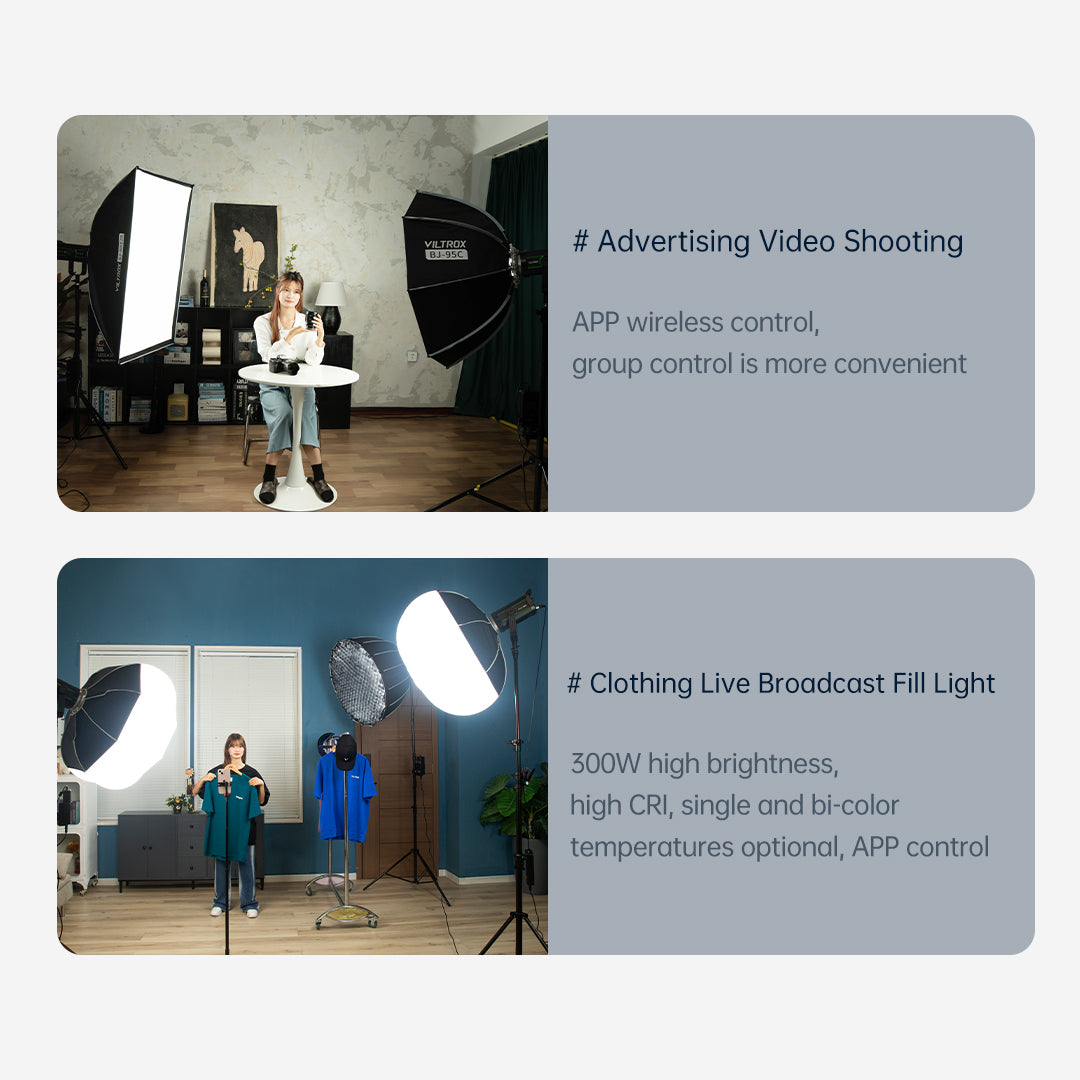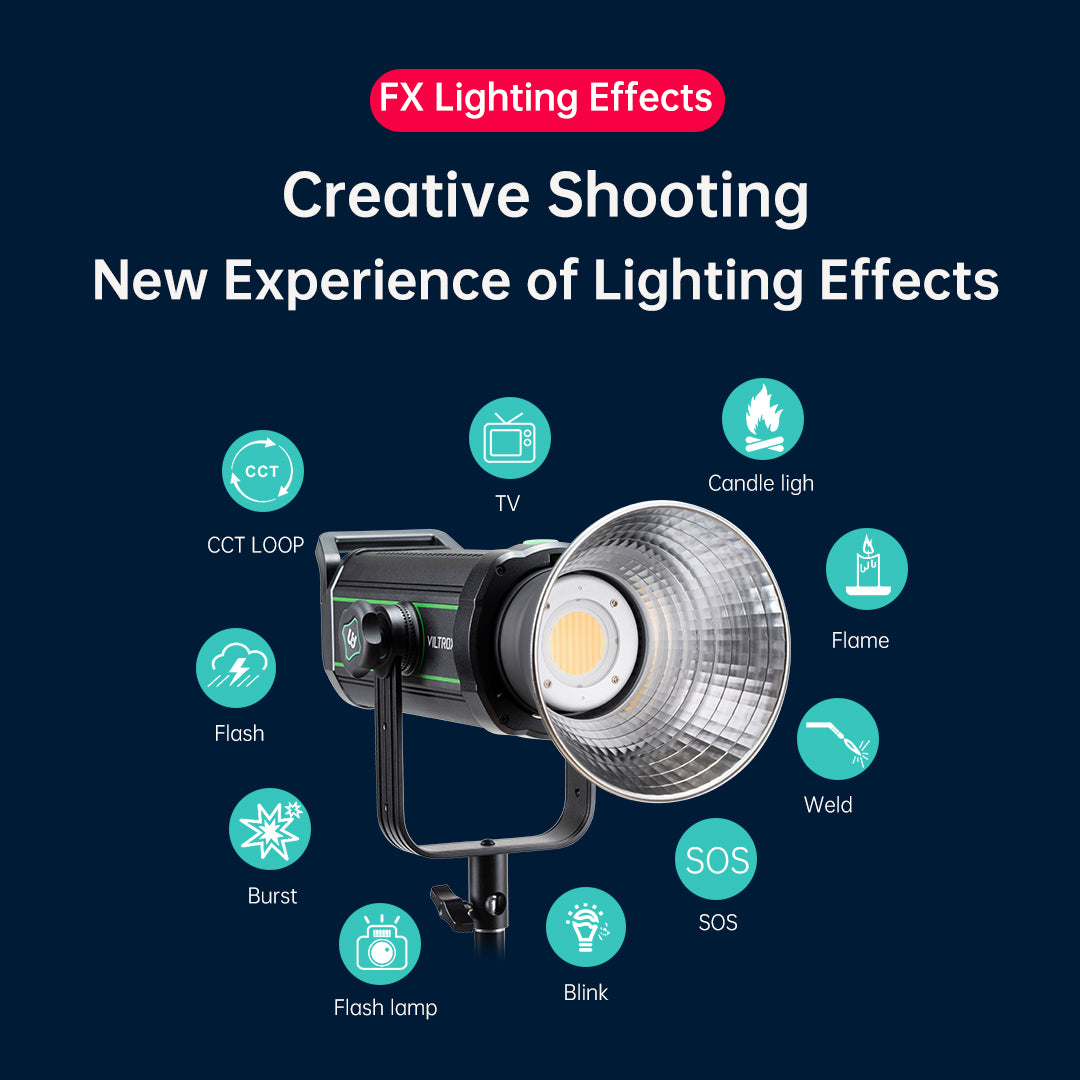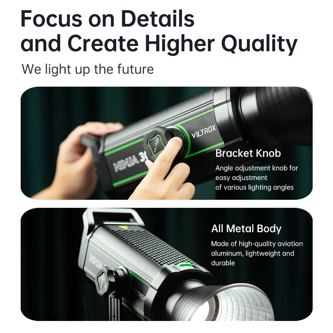 VILTROX NINJA 30/30B 300W Luminozitate ridicată, o singură/dublă culoare COB Studio Light cu 6/10 FX Control efecte de iluminare prin aplicația mobilă
