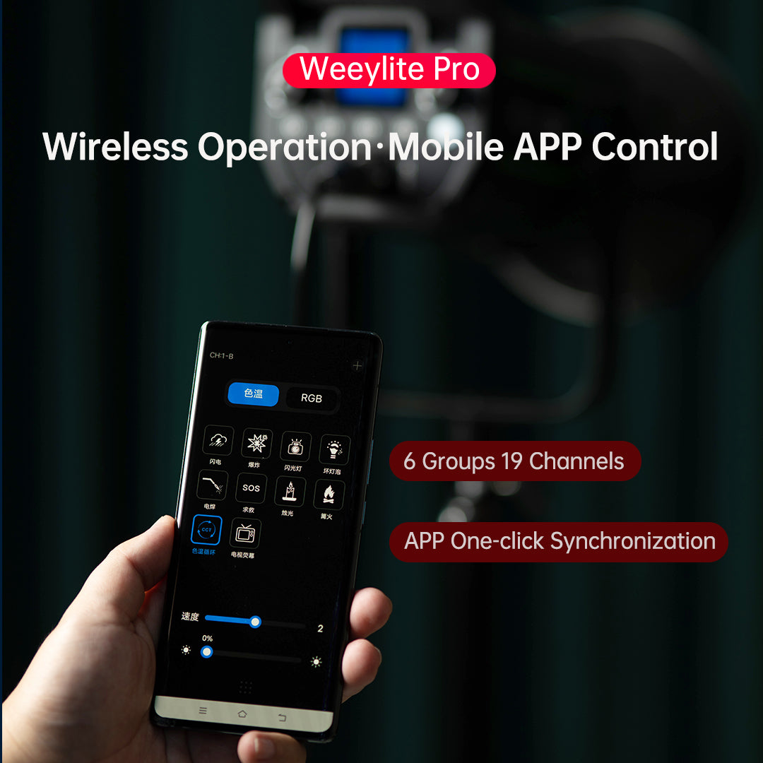 Cipul receptor fără fir încorporat, prin intermediul aplicației WeeylitePro, puteți controla cu precizie setările și parametrii diferitelor lumini din seria NINJA 30 de pe smartphone sau tabletă, oferindu-vă mai multă emoție.