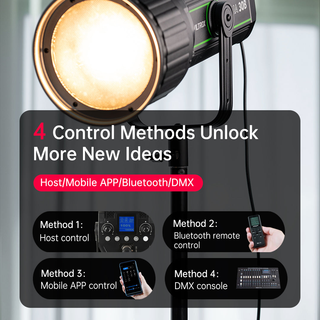 Luminile din seria NINJA 30 folosesc tehnologia de setare a telecomenzii fără fir cu 19 canale în 6 grupuri controlate separat. Luminozitatea, temperatura culorii, efectul luminii etc. poate fi reglat folosind diferite metode de reglare a luminii.