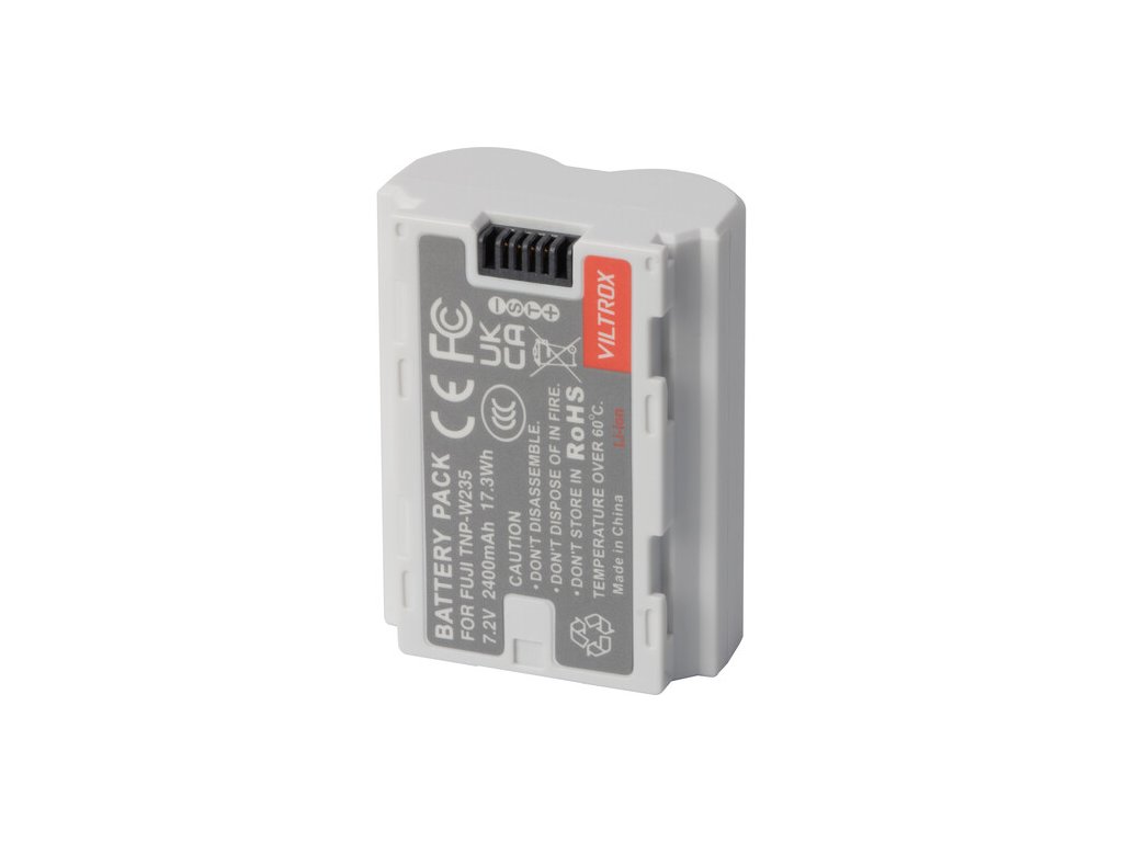 Bateria reîncărcabilă pentru cameră Viltrox NP-W235 oferă o putere fiabilă pentru anumite camere FUJIFILM. Cu o capacitate de 2400 mAh și o ieșire de 7,2 V, oferă 17,3 wați oră de energie. Este compatibil cu modelele FUJIFILM X-S20, XT5, XT4, XH2, XH2S, GFX100 și GFX50S II și asigură performanțe fără probleme. Bateria poate fi încărcată convenabil în cameră sau cu un încărcător compatibil, oferind flexibilitate și confort pentru ședințe foto mai lungi.