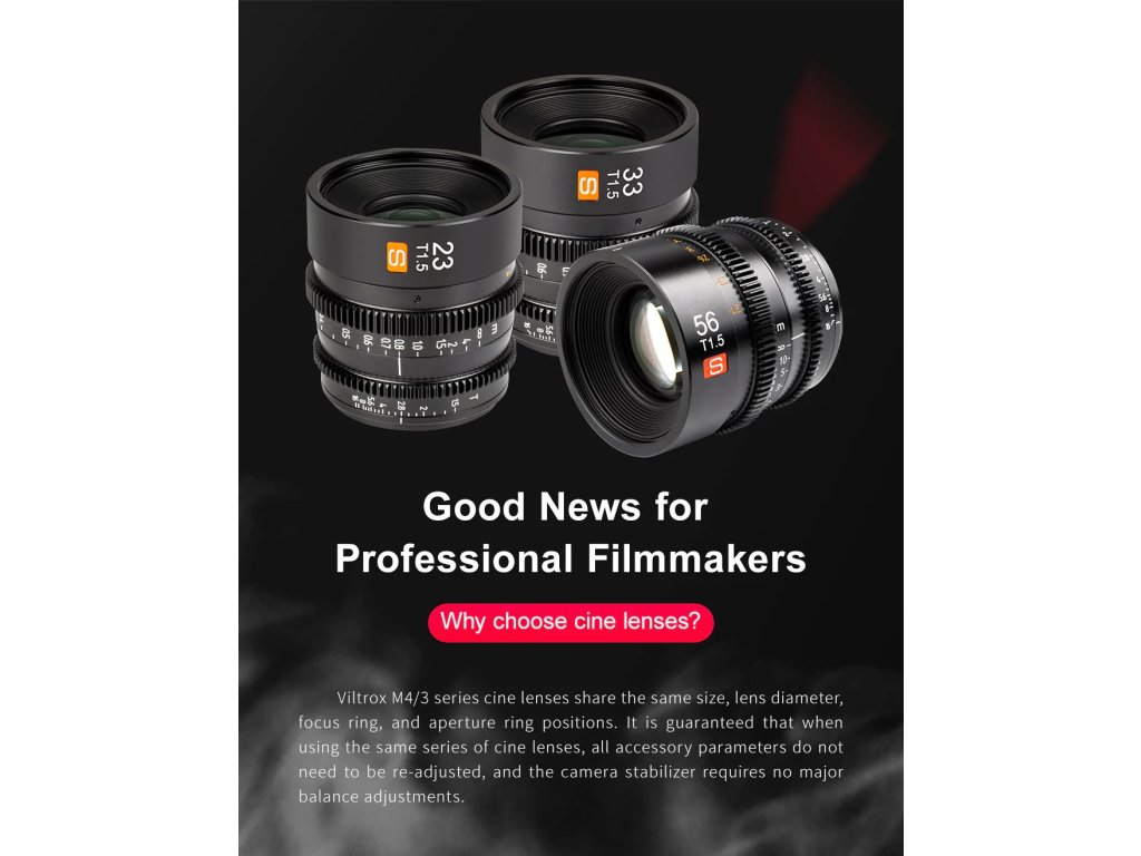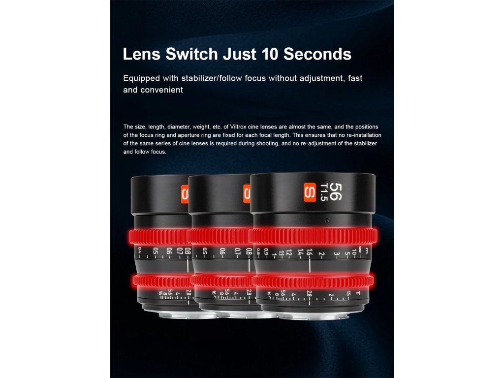 Lentilele de film din seria Viltrox MFT au aceeași dimensiune, diametrul obiectivului, inelul de focalizare și poziția inelului de deschidere, ceea ce face ușoară lucrul cu accesorii precum sistemele de urmărire a focalizării, filtrele sau obturatoarele. Are un design de focalizare, o deschidere mare T1.5, făcându-l potrivit pentru situații cu lumină scăzută și oferind o adâncime mică de câmp pentru un aspect cinematografic. Claritatea mare, distorsiunea redusă, precum și un efect de respirație invizibil vor fi un atu excelent pentru înregistrarea video profesională și de înaltă calitate! Lentilele oferă precizie, construcție integrală din metal, nano-acoperire cu mai multe straturi, deschidere cu 14 lame pentru un bokeh frumos, optică cu distocie scăzută cu aberație cromatică scăzută, diafragmă reglată fără probleme și inele de focalizare cu rază lungă...