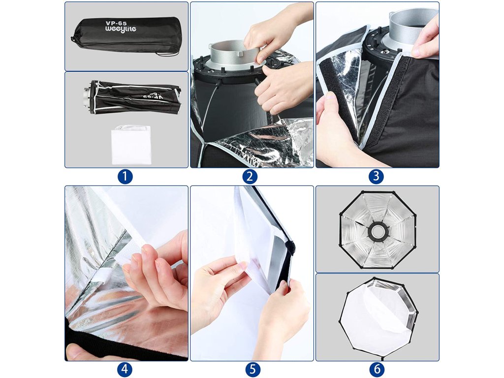 Softbox pentru reflector LED Viltrox Weeylite Ninja 400 (și altele cu baionetă Bowens, de exemplu Sokani x60/Godox SL-60W VL150/Aputure 1202). Diametru 65 cm, adancime 41 cm. Pachetul include o geanta de transport.