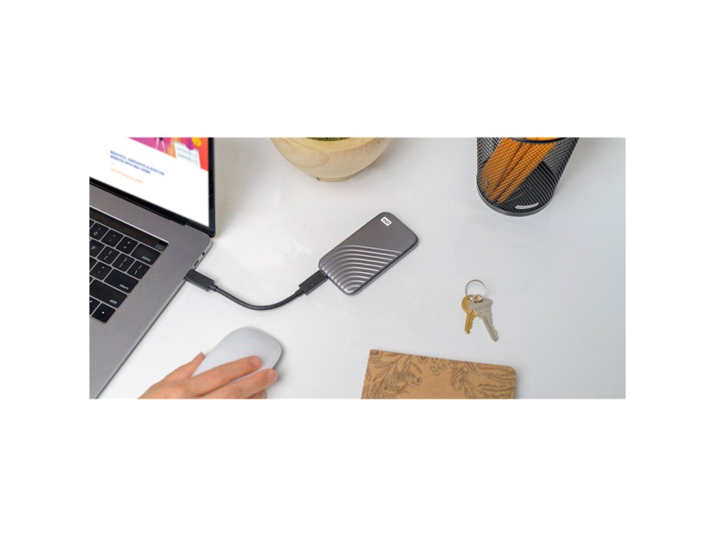 - My Passport SSD este o unitate portabilă cu viteză extremă- protecția prin parolă combinată cu criptarea hardware păstrează conținutul în siguranță