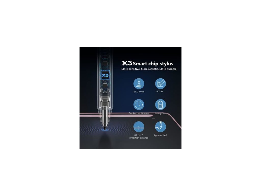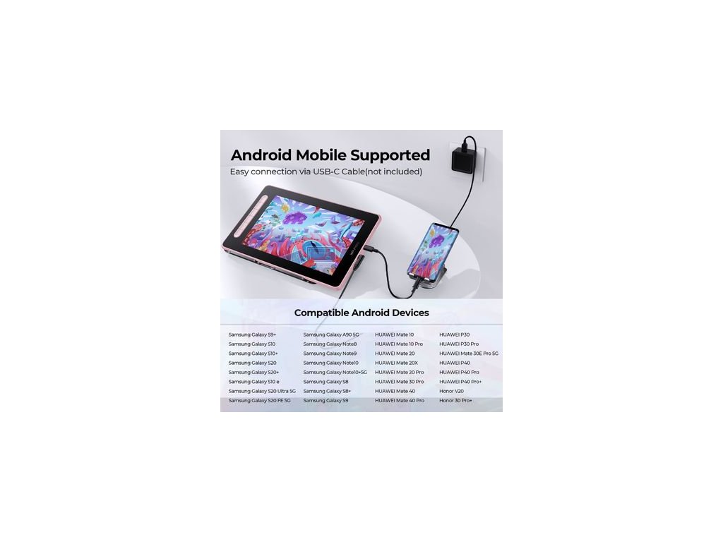 Tabletă grafică Ecran IPS de 10,1 inchi, 1920 × 1080, zonă activă 224,49 × 126,7 mm, 8192 niveluri de presiune, rezoluția stratului senzor 5080 lpi, gamă largă de culori.Parametri suplimentari