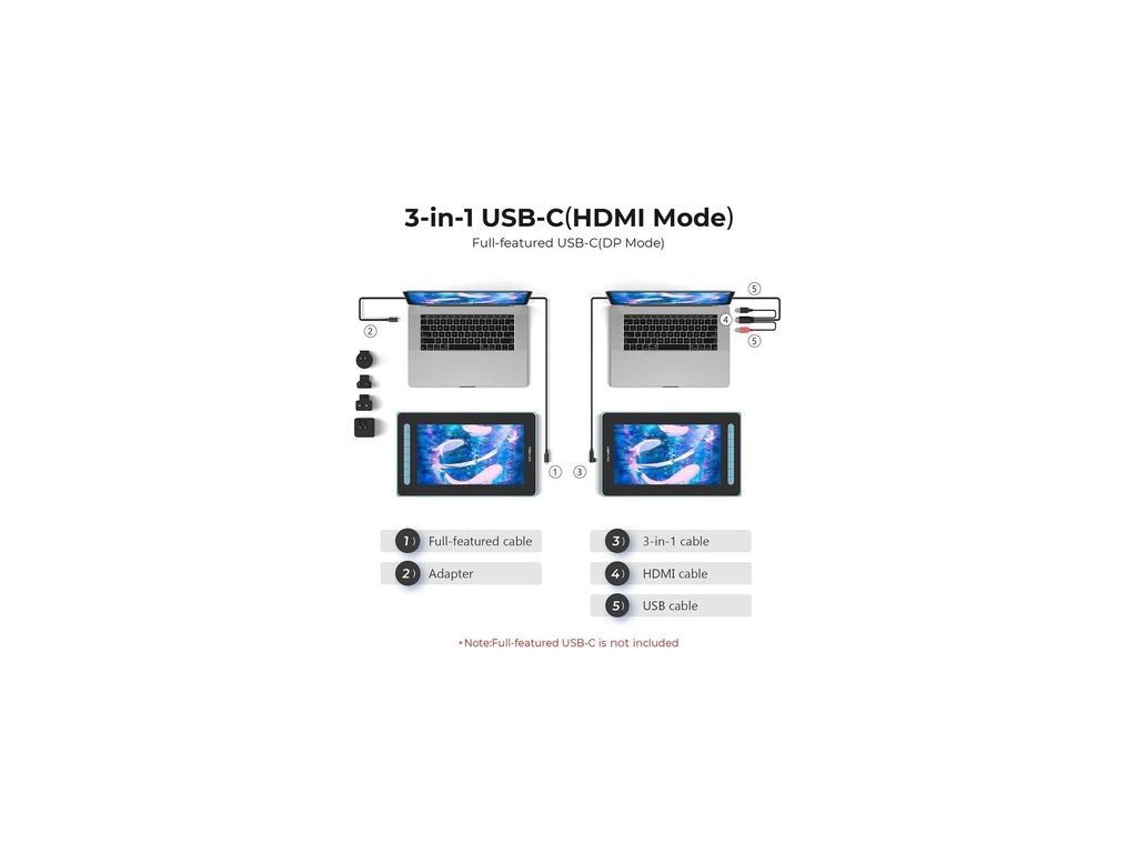 Tabletă grafică Ecran IPS de 11,9 inchi, 1920 × 1080, zonă activă 263 × 148 mm, 8192 niveluri de presiune, rezoluția stratului senzorului 5080 lpi, gamă largă de culori.Parametri suplimentari