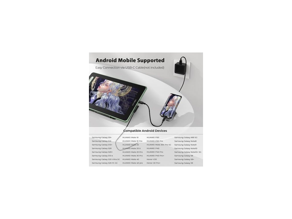 Tabletă grafică Ecran IPS de 13,3 inchi, 1920 × 1080, zonă activă 293,76 × 165,24 mm, 8192 niveluri de presiune, rezoluția stratului senzor 5080 lpi, gamă largă de culori.Parametri suplimentari