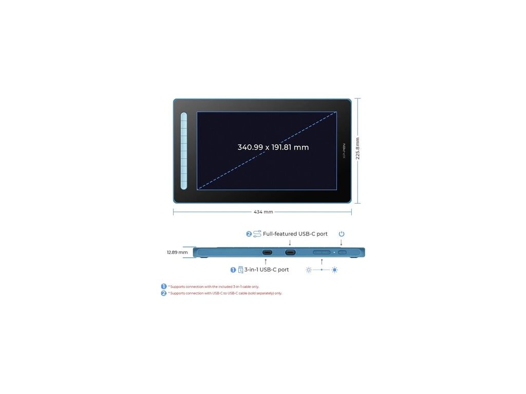 Tabletă grafică cu afișaj LCD, 434 x 255,8 x 12,89 mm, stylus X3 Elite, suportă înclinare a creionului la 60°, 10 taste rapide, rezoluție 5080LPI, USB-C.Parametri suplimentari