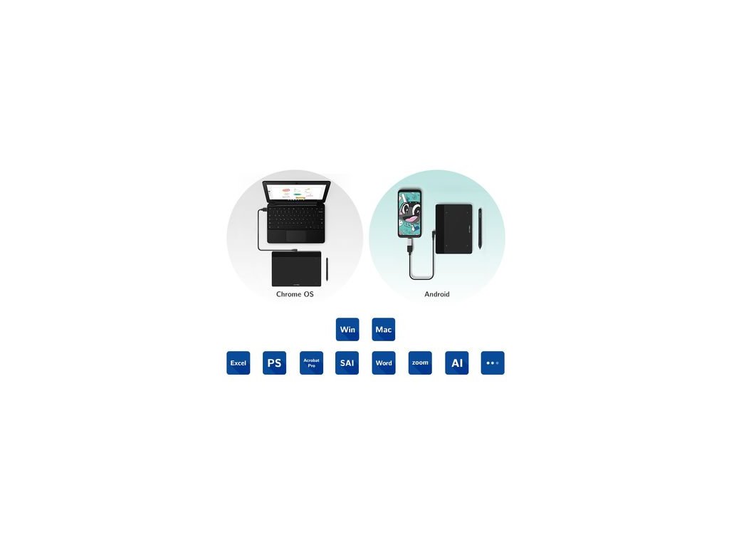 Tabletă grafică de bază, 315 x 222,9 x 12,5 mm, stylus P01 fără baterie, acceptă înclinare la 60° a creionului, rezoluție 5080LPI, USB-CParametri suplimentari