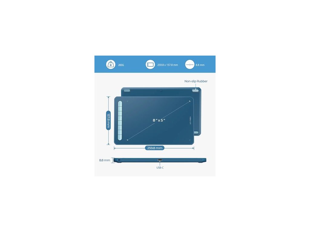 Tabletă de desen XPPen Deco M (zonă activă 8 × 5 inchi) cu stylus X3 Elite fără baterie și 8 taste rapide, compatibilă cu sistemul de operare Chrome, Windows.Parametri suplimentari