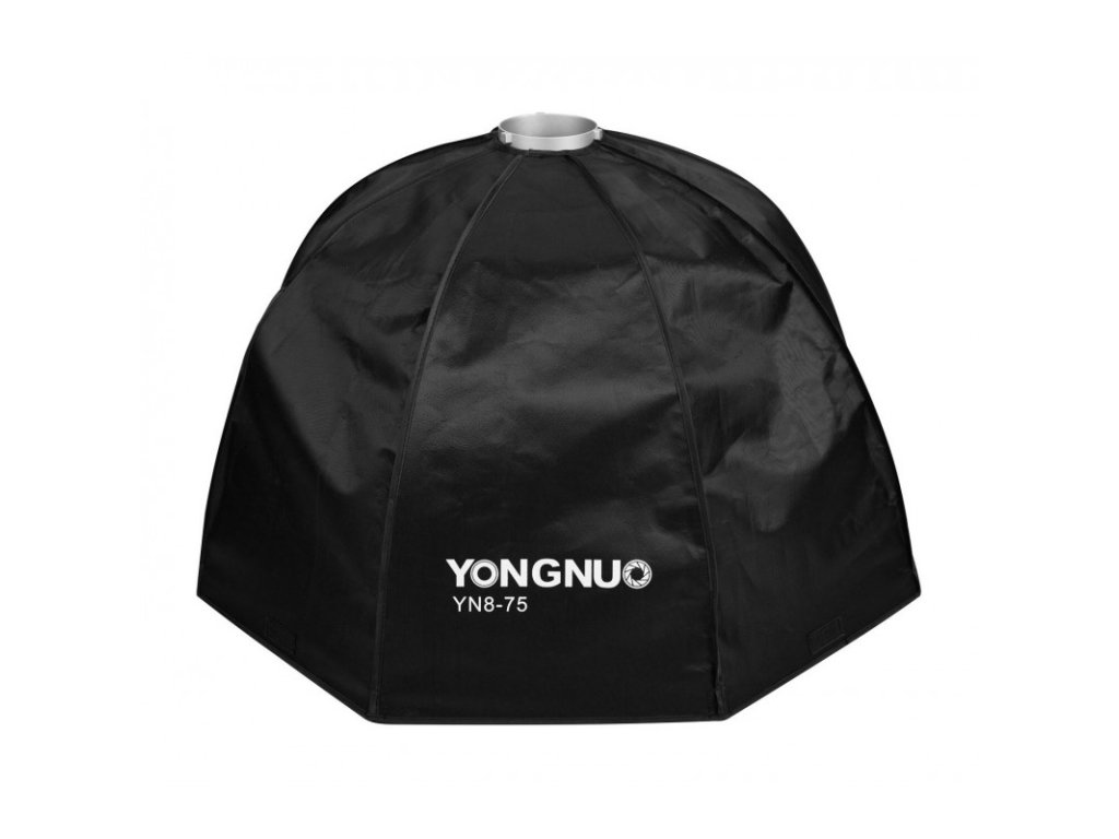Yongnuo YN8-75 este un softbox octogonal de înaltă calitate, cu diametrul de 75 cm. Softbox-ul este echipat cu popularul suport Bowens, care este compatibil cu majoritatea lămpilor de studio disponibile pe piață. Setul include, de asemenea, două straturi de pânză difuză și o geantă practică de transport. Iluminare plăcută pentru ochi Cea mai importantă sarcină a softbox-ului este atenuarea luminii emise de bliț prin eliminarea umbrelor profunde și dure. Pereții interiori ai modificatorului sunt fabricați dintr-un strat de argint care acționează ca un reflector, în timp ce două straturi de material de difuzie sunt responsabile pentru o dispersie uniformă a luminii. Montare clasică și compatibilitate largă Inelul de montare de tip Bowens vă permite să montați softbox-ul pe majoritatea lămpilor convenționale de studio. Softbox-ul este, în afară de umbrelă, modificatorul de lumină de bază folosit în fotografia de studio, portret, culinară și de produs. Caietul de sarcini model: Yongnuo YN8-75 montură: inel tip Bowens diametrul softbox: 75 cm adâncime softbox: 45 cm Dimensiuni transport: 58 x 20 x 7 cm greutate: 1,2 kg Compatibilitate studio, bliț, lămpi LED și suporturi de lămpi pentru reporteri cu montare Bowens Conținutul setului 1 x softbox Yongnuo YN8-75 1 x inel de montare Bowens 8 x sârmă metalică 2 x material de difuzie 1 x softbox și geantă pentru accesoriiParametri suplimentari