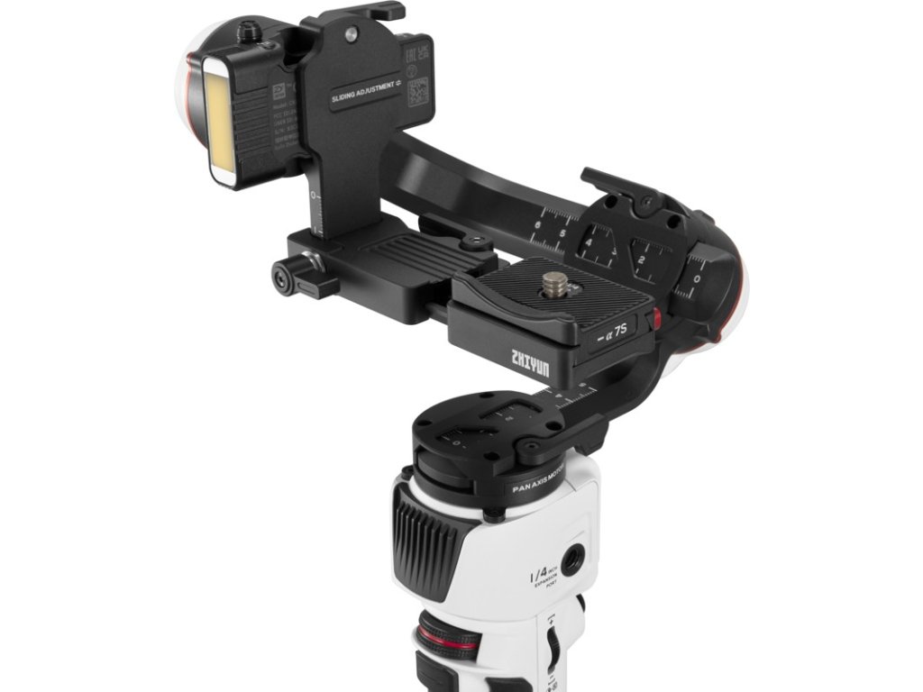 În partea superioară a cardanului găsim trei motoare puternice care pot gestiona 90% din toate camerele fără oglindă de pe piață. Camera poate fi atașată cu ușurință la cardan folosind o placă de eliberare rapidă nou proiectată, care permite schimbarea bateriei în cameră, fără a fi nevoie să reechilibrați cardanul. O altă caracteristică remarcabilă este noua lumină LED încorporată cu un flux luminos de 800 de lumeni, care se află pe partea laterală a cardanului superior. Nivelurile de temperatură a culorii pot fi ajustate în intervalul 3000-5400 K. De asemenea, este posibil să atașați filtre de lumină magnetice la lumina LED, care vin în patru culori diferite.